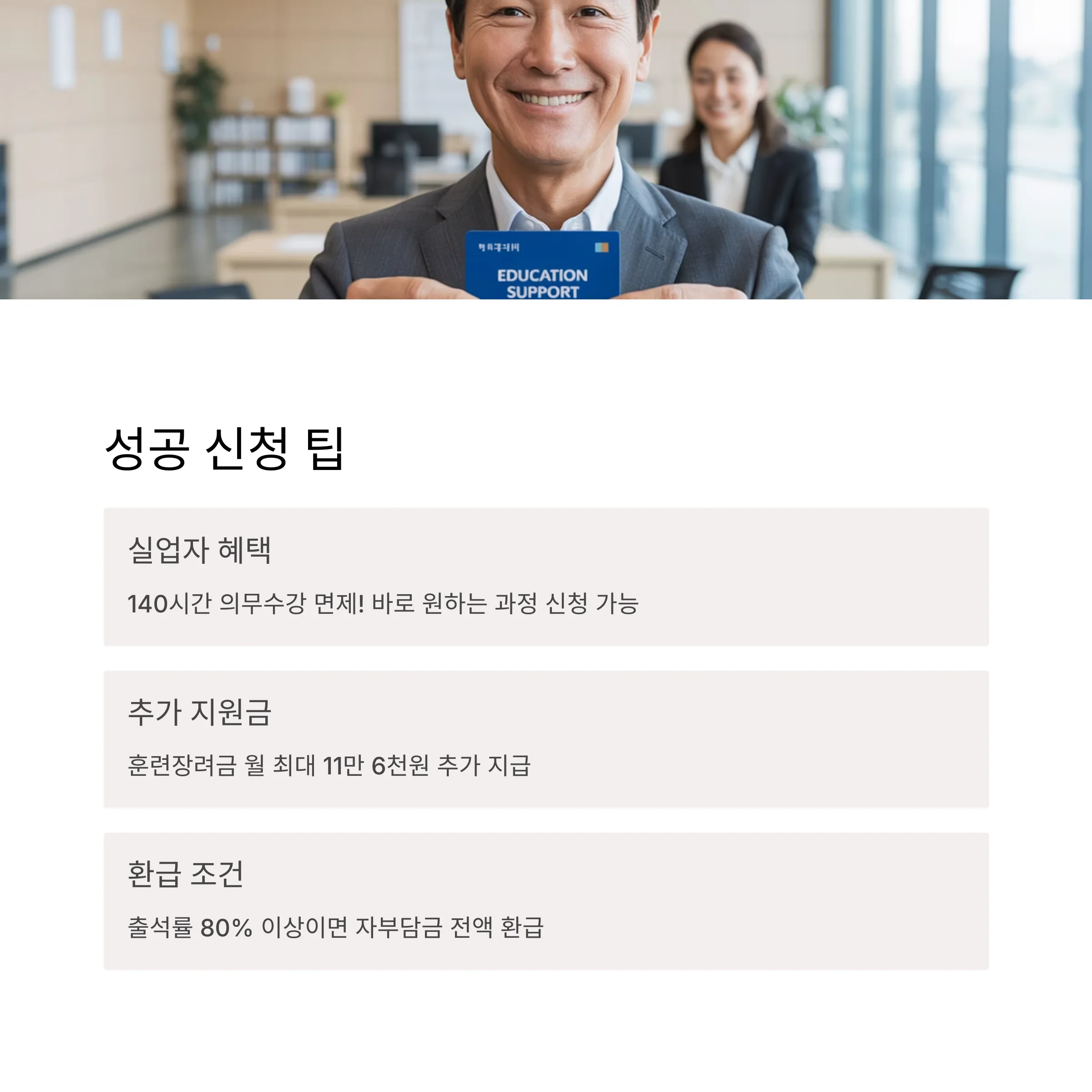 신청은 온라인으로 간단하게 할 수 있으니, 오늘 바로 시작해보세요. 내일의 나를 위한 투자, 정부가 지원합니다!