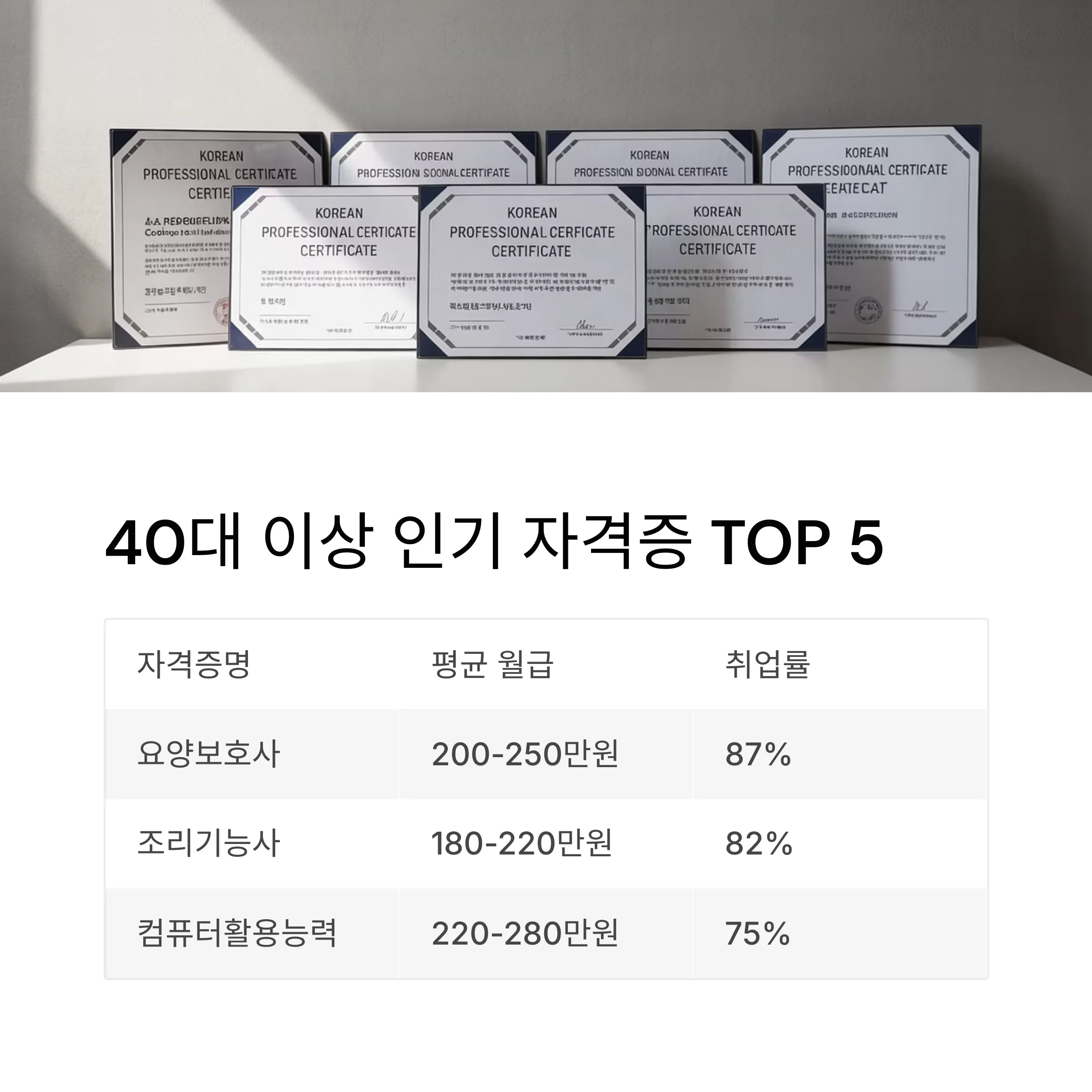 40대 이상 인기 자격증 TOP 5
